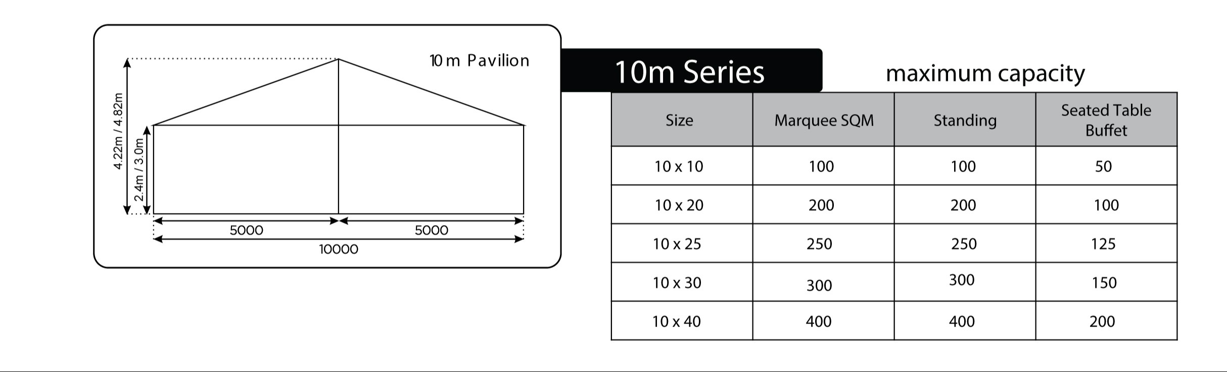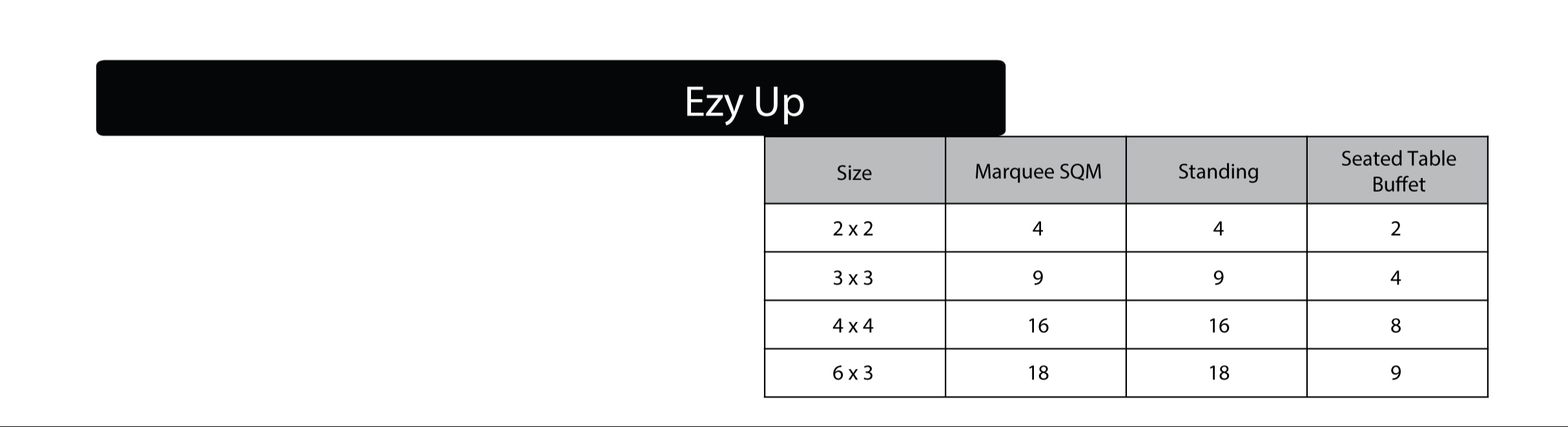 * Marquee people capacity / seating capacity is guide only. Numbers may vary depending on the configuration and layout of the marquee, table setting & sizes. Please discuss with our sales rep for more accurate information.