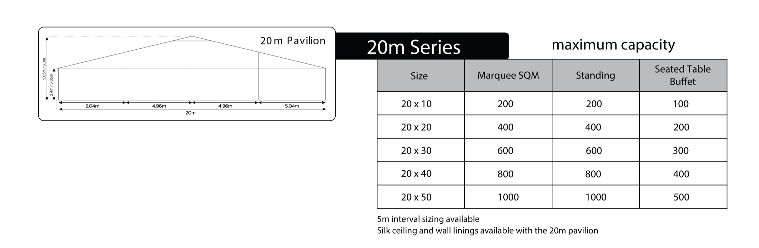 One of the most crucial issues when choosing a marquee to hire is to get the right size. Too large and it can appear that not enough people have attended, too small and it is overcrowded and uncomfortable. Our capacity guide will help you choose the right size for your next event.